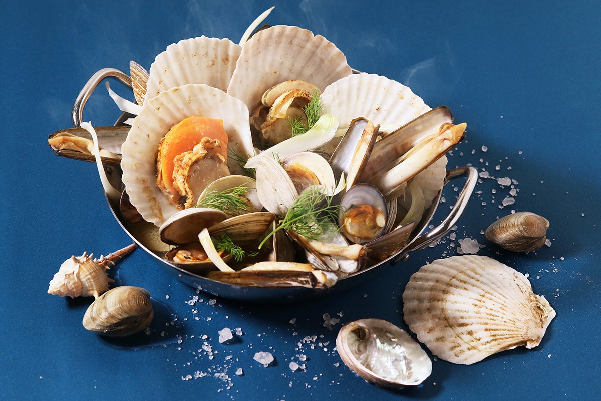 ホタテ、ハマグリ、アサリなどの4種の貝が味わえる贅沢貝尽くし鍋!貝の旨味がたっぷり溶け出したスープで作る〆のリゾットも絶品★