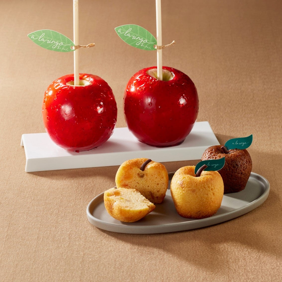 「カリっとりんご飴、りんご型のパウンドケーキ」