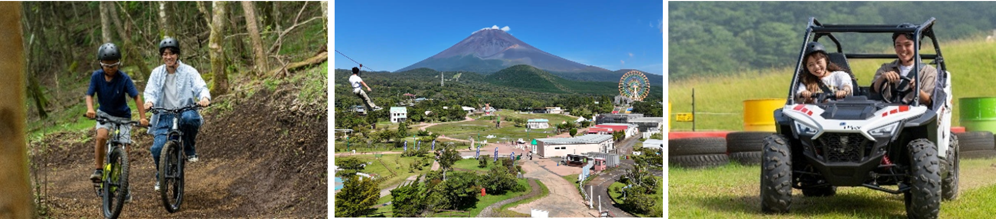 また、5月14日(木)より、昨年秋に登場した“ぐりんぱ3大アクティビティ“がお得に体験できる新セット券『ACTIVE3(アクティブスリー)』を販売いたします。本チケットでは、全長400mの爽快ジップライン「FUJI SKY ATTACK(フジスカイアタック)」、富士山ならではのダイナミックな地形と自然を活かしたマウンテンバイクコース「FUJIYAMA TRAIL(フジヤマトレイル)」、起伏に富んだオフロードを四輪バギーで駆け抜ける「フジヤマバギー」の3種が通常よりも最大45%お得に体験できます。