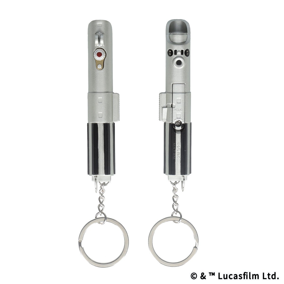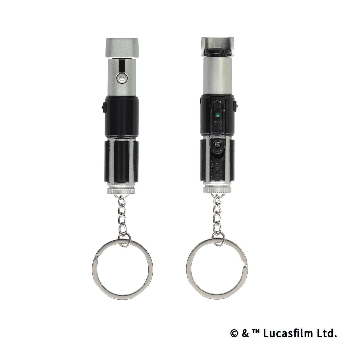 STAR WARS SPECIAL STORE by BENELICに、待望のライトセーバーをモチーフにしたアイテムが登場します。手のひらサイズの光るキーリングは、小ぶりながらも精巧な作りで、それぞれのライトセーバーの特徴を表現しました。映画『STAR WARS』作中のライトセーバーのカラーに合わせ、ボタンを押すと「ルーク・スカイウォーカー」と「ヨーダ」はグリーンに、「アナキン・スカイウォーカー」はブルーに、「ダース・ベイダー」はレッドにLEDが光るこだわりの仕様です。