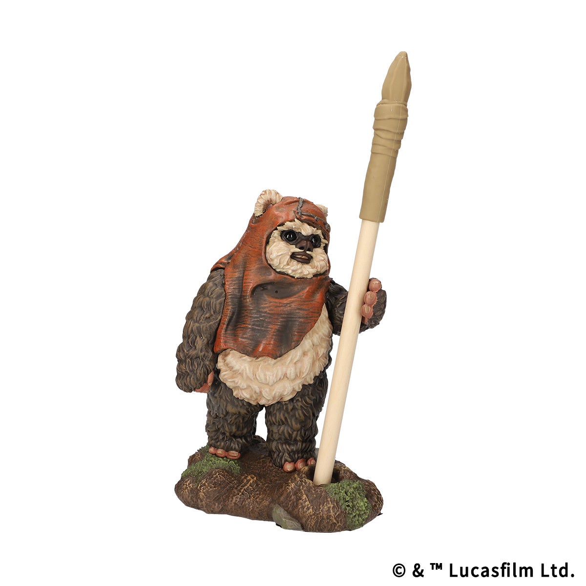 槍をイメージした鉛筆を持った、イウォークのペンスタンドです。映画『STAR WARS』に登場するイウォークの凛々しい顔立ちや毛並み、瞳のハイライトなど細部まで表現し、今にも動き出しそうな雰囲気に仕上げました。付属の鉛筆はもちろんのこと、お手持ちのペンを立てかけて使用することが可能。インテリアとしての精巧さと、ペンスタンドの実用性を兼ね備えたとっておきのアイテムです。