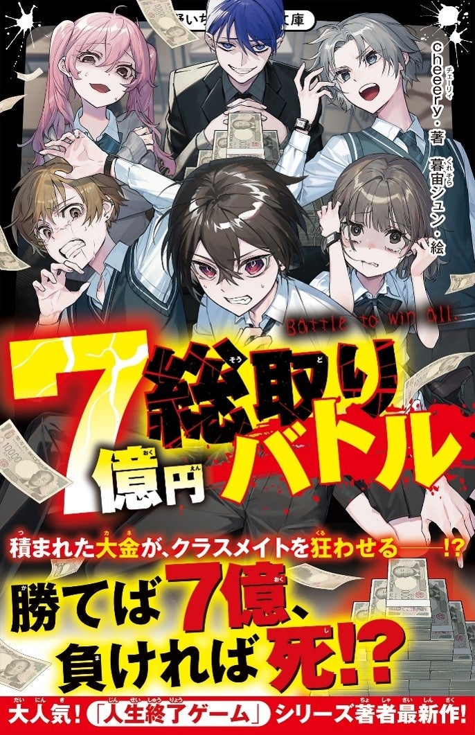 【あらすじ】中2の亜紗矢の教室に突然現れた、学園の理事長。彼が机に積み上げたのはなんと、7億円!?「ゲームで勝てば、このお金を全部あげよう」喜ぶ亜紗矢たちだったが、始まったゲームには勝てば賞金、負ければ即死というとんでもないルールがあった!大金と命をかけたバトルで、仲が良かったクラスの絆は崩れ去る。仲間思いの優等生、完全無欠の生徒会長、しっかり者のバスケ部副キャプテン…個性派ぞろいのクラスで生き残り、7億を手にするのは―!?