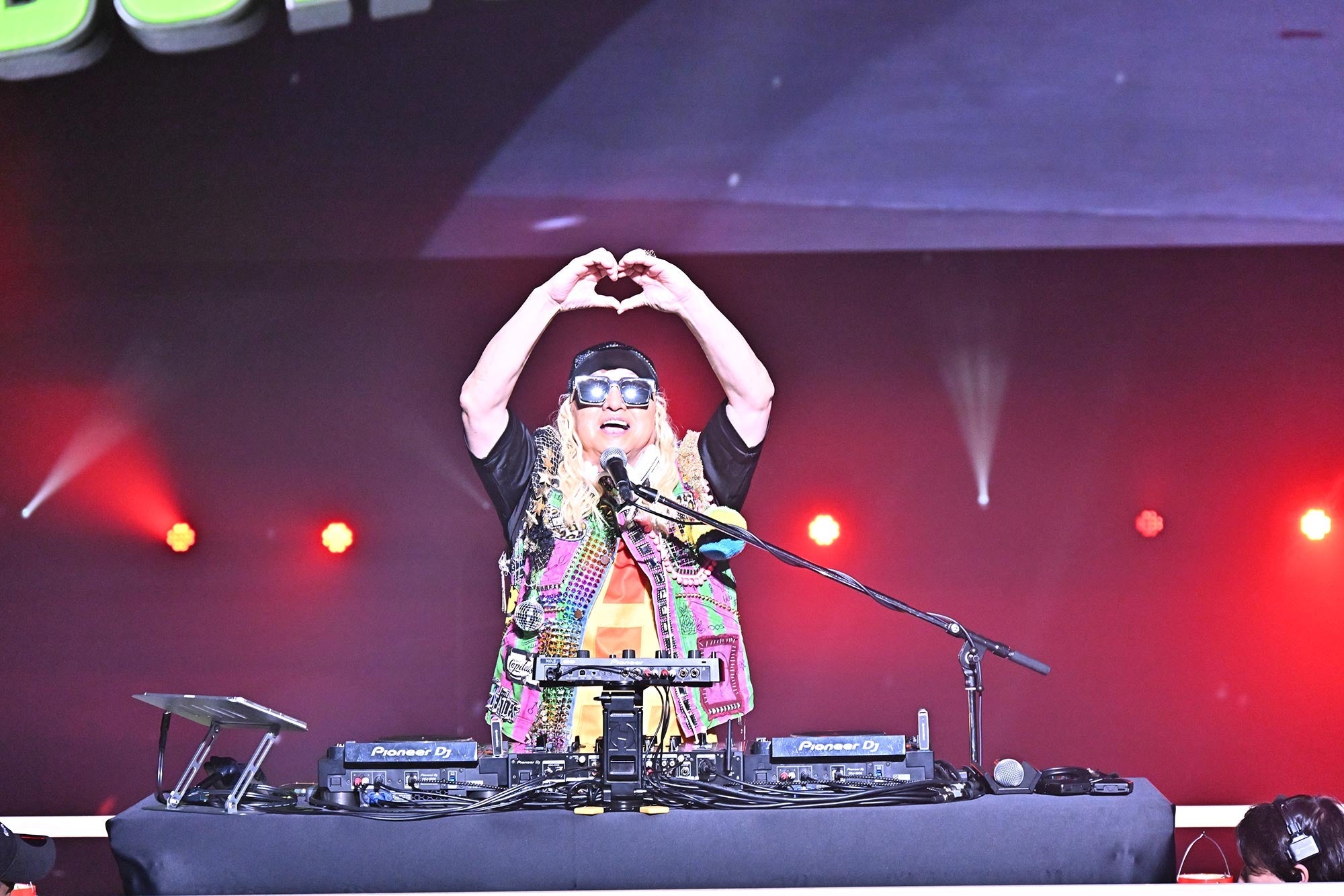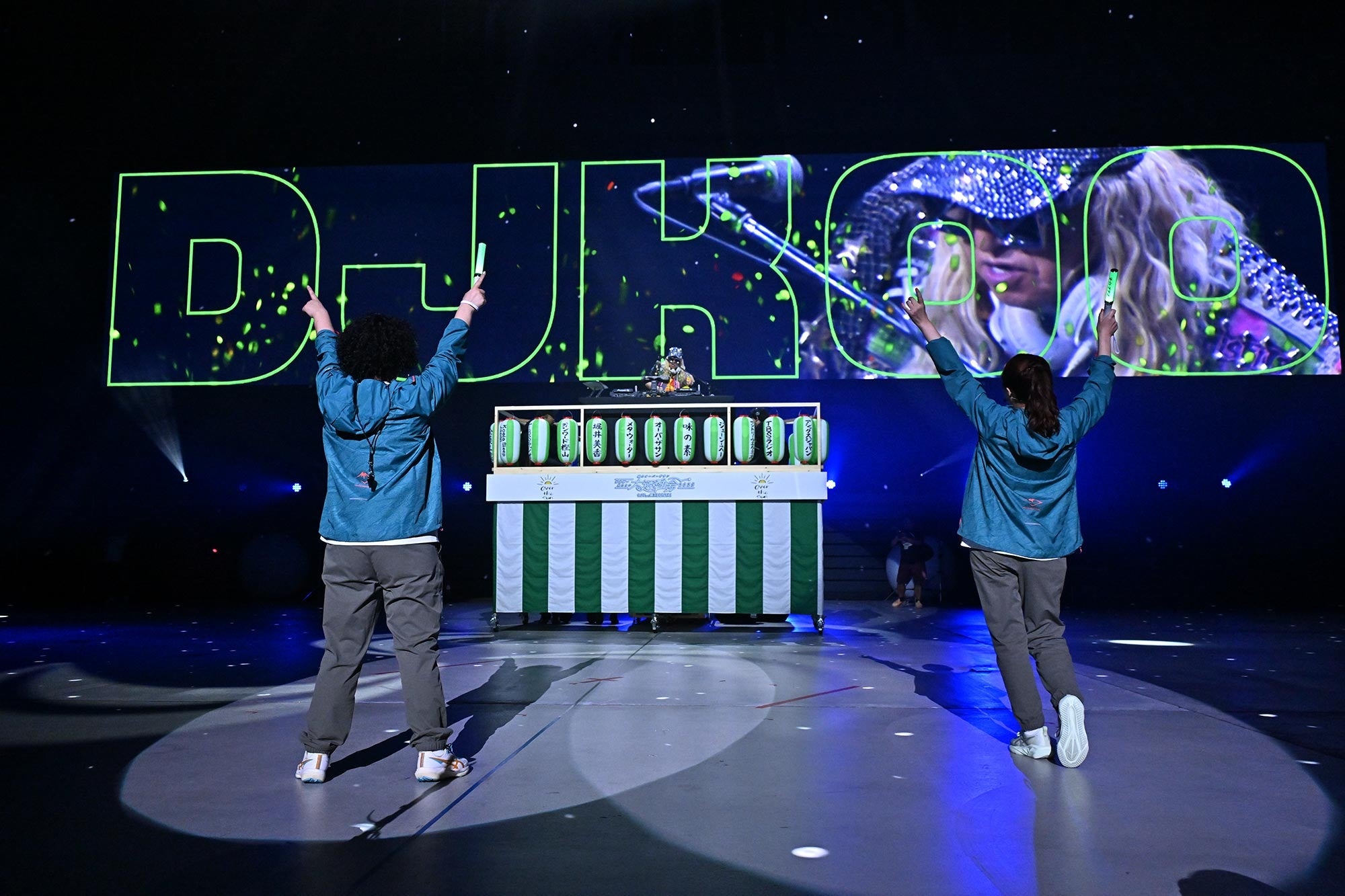 お昼休憩を挟み、ハーフタイムショーが始まると…突如会場が暗転。やぐらに乗ってスペシャルゲストのDJ KOOさんが登場しました!