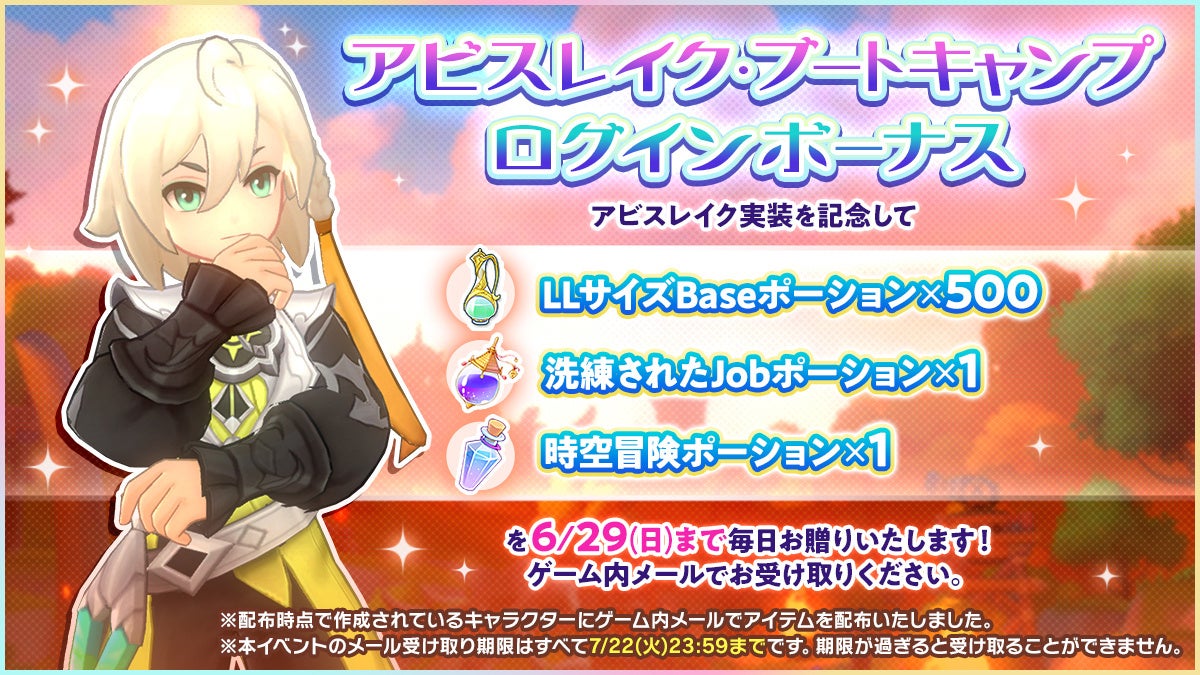 新たに実装されたメインクエスト「アビスレイク」での冒険をサポートする、「アーリーサマーブレイク~エンジョイ・アビスレイク~」を開催します。