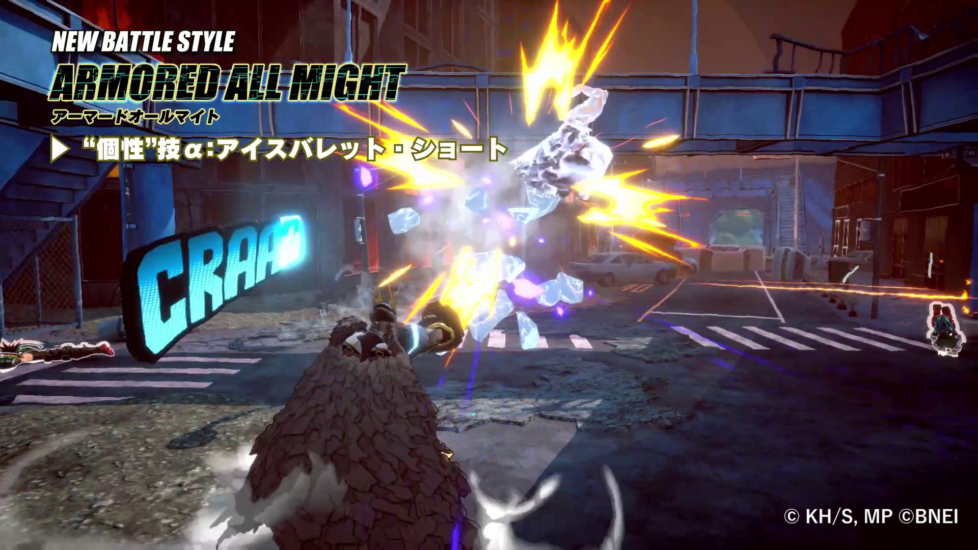 新バトルスタイルの「アーマードオールマイト」に加え、新コスチュームとして「アーマードオールマイト(ヒーローコスチューム カモフラージュver.)」や、「アーマードオールマイト(ヒーローコスチューム 損傷ver.)も登場!