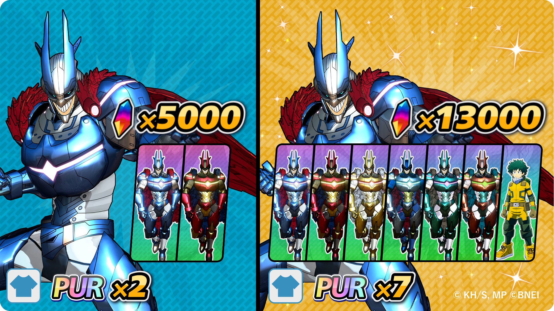 「エンデヴァー【赫灼熱拳】」や、新コスチュームの「エンデヴァー(レザースタイル)」や、「八百万百(くノ一)」をはじめ、「飯田天哉(忍)」も再登場!