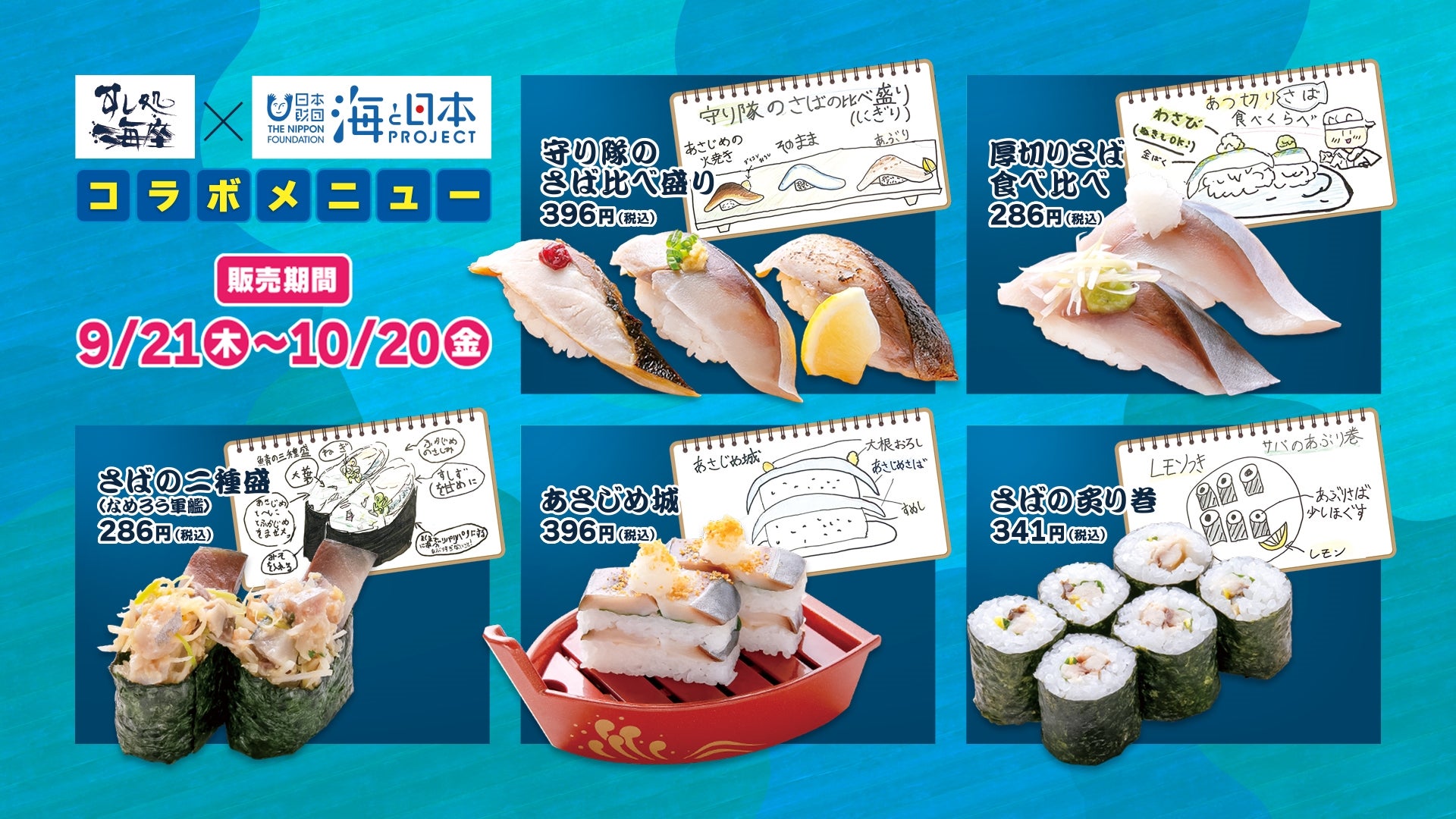 このコラボメニューは、今年6月~7月に滋賀県と福井県で実施した環境学習イベント「食卓から未来の海を守り隊3」の隊員に任命された小学5年生20人の子どもたちが、多くの人に琵琶湖や海とのつながりや豊かさを感じてもらうために「オリジナル鯖寿司」を考案し、海座が商品化しました。
