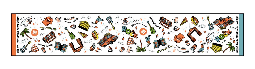 8月10日(木)から一部WEB先行予約をスタートするオフィシャルグッズのアートワークは、国内外のアーティストやレーベルのアートワーク・ライブポスター、ロックフェスやアパレルブランドへのグラフィック提供を行うイラストレーター「TM paint(ティーエム ペイント)」が手掛けました。ロングスリーブTシャツはもちろんタオルマフラーやスマホショルダーなど、フェスのマストアイテムに、UNI9UE PARKらしい音楽を軸にしたアイコンやキャラクターをプリントしたユニークなラインアップです。