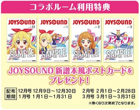株式会社エクシングの子会社で、全国にカラオケ店舗・ネットカフェ店舗を展開する株式会社スタンダード(本社:東京都港区、代表取締役社長:米田洋一)は、2022年12月9日(金)から2023年3月30日(木)までの期間中、「アイカツ!10th STORY ~未来へのSTARWAY~×JOYSOUND直営店コラボキャンペーン」と題して、JOYSOUND新宿西口店(東京) にカラオケコラボルームをオープンいたします。ご利用特典として、JOYSOUND新譜本風オリジナルポストカードを1枚プレゼント!