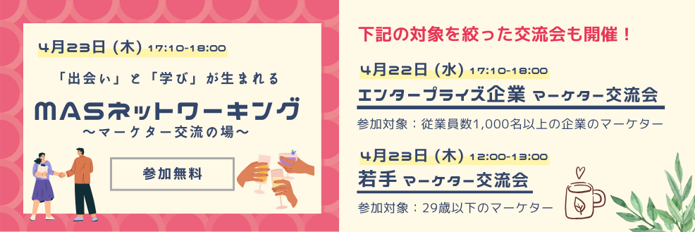 【参加無料】同じ課題を持つマーケター同士が直接つながる「MaSネットワーキング ~マーケター交流の場~」を開催