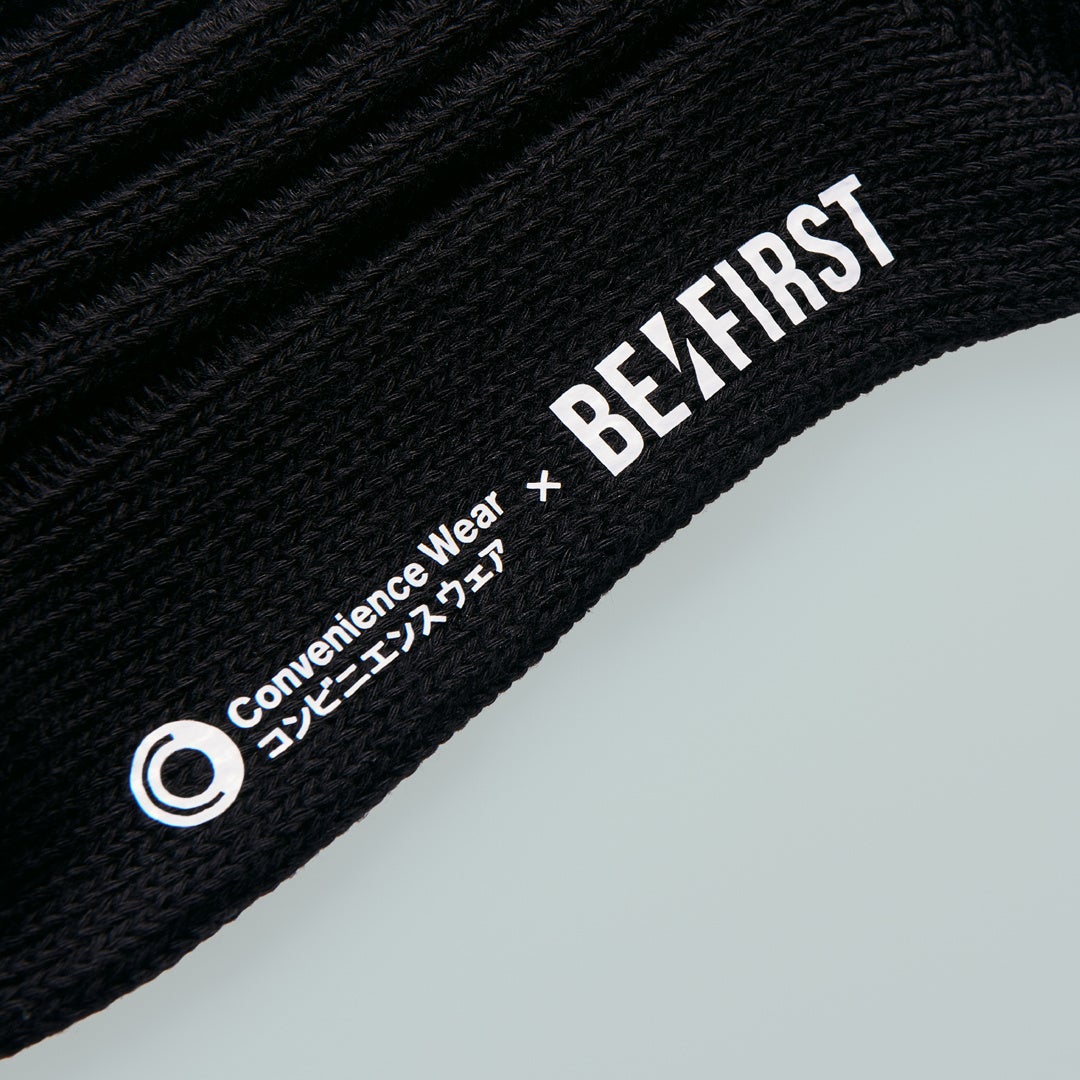 「コンビニエンスウェア」から2025年クリスマスアンバサダー「BE:FIRST」とのコラボレーションアイテムとして、ソックスとハンカチをファミマオンラインで発売いたします。「BE:FIRST」のテーマカラーである黒と白を基調に、ロゴの世界観を表現しました。ライブコーデにはもちろん、普段使いもできるデザインです。