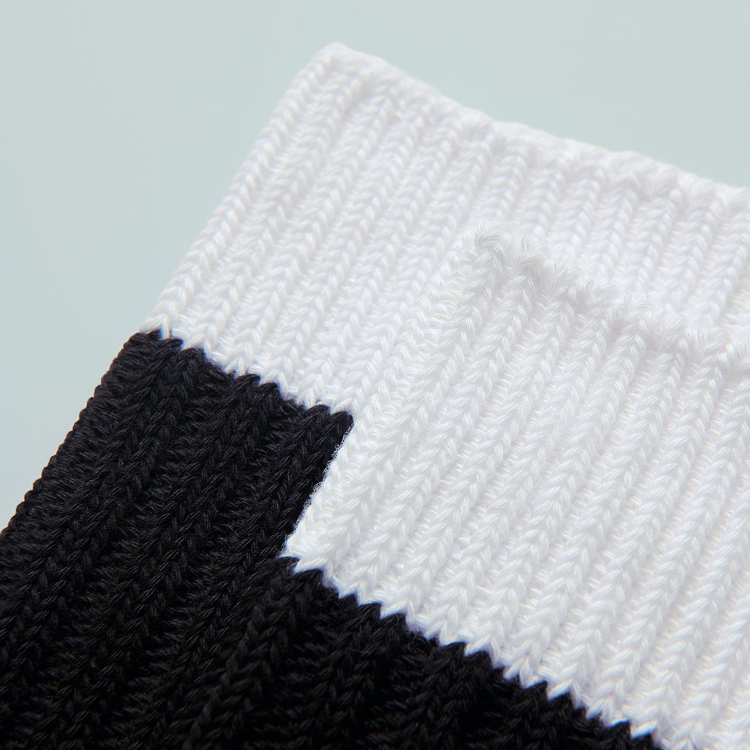 【内容】「コンビニエンスウェア」から2025年クリスマスアンバサダー「BE:FIRST」とのコラボレーションソックスです。異なる種類の太めの糸を組み合わせ、まるで手編みのようにざっくりと編まれたこだわりの1足です。厚手素材なので暖かく、秋冬のコーディネートを彩ります。つま先、かかとには補強糸を使用し、耐久性を高めました。抗菌防臭加工でニオイにくい仕様です。「BE:FIRST」のテーマカラーである黒と白を基調に、ロゴの世界観を表現しました。ライブコーデにはもちろん、普段使いもできるデザインです。
