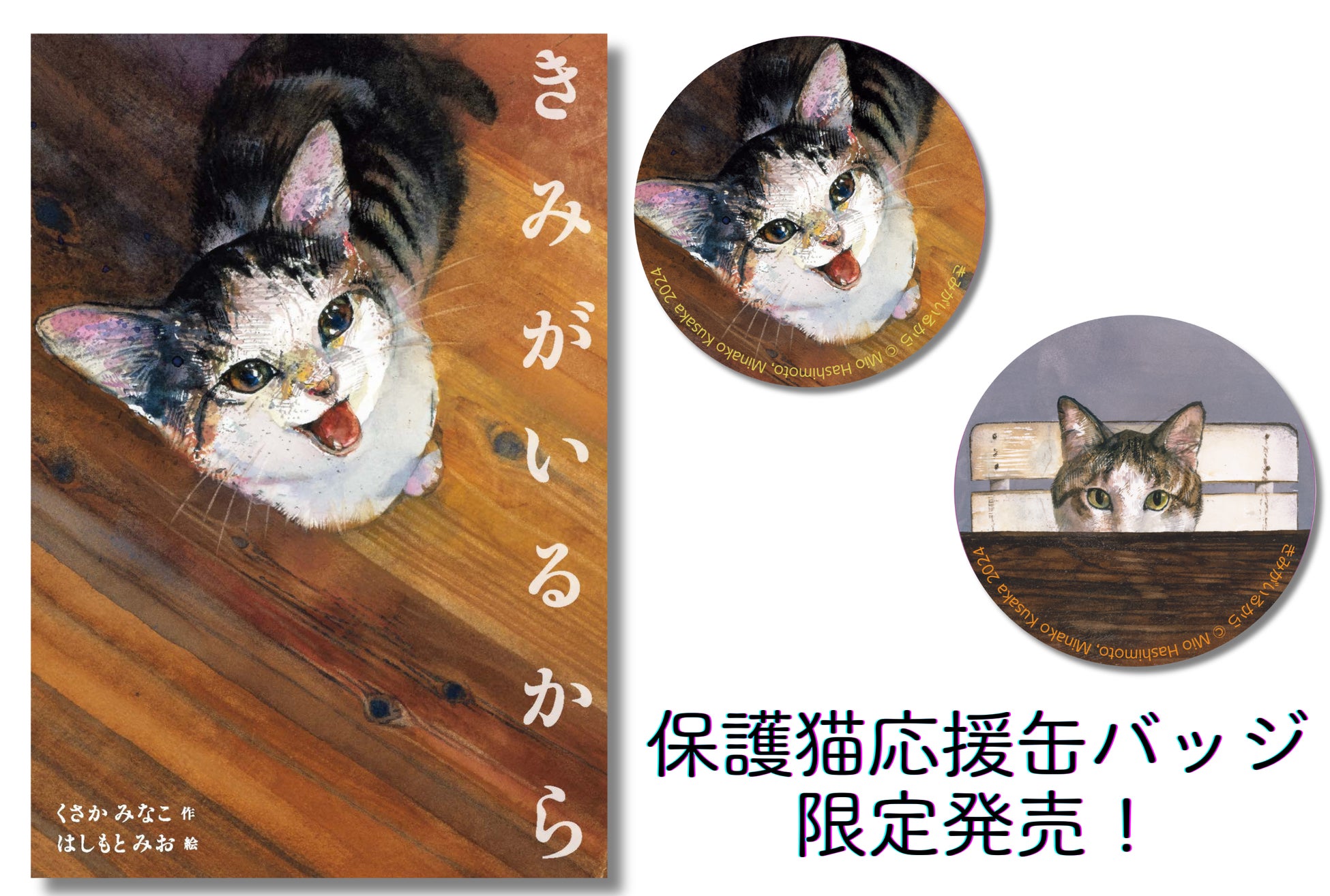 絵本『きみがいるから』保護猫応援缶バッジ限定発売! 三軒茶屋の猫本専門店Cat's Meow Books 保護猫応援イベント 「ぼくになまえをちょうだい~保護猫応援アートマルシェ」にて。