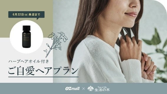 スターツ出版株式会社(本社:東京都中央区、代表取締役社長:菊地修一)が運営する会員450万人のおでかけ情報サイト「OZmall(オズモール) 」のヘアサロン予約では、 5/22(木)~6/22(日)の期間中、ハーブや精油などのアロマアイテムを扱うライフスタイルブランド「生活の木」とのコラボプランを販売します。インドやスリランカで古くから使用されてきたハーブをふんだんに使用した「アーユルライフシリーズ」の中からアウトバスやスタイリングなどマルチに使用できるヘアトリートメントオイルがセットに。サロンでも仕上げにヘアトリートメントオイルをつけてオリエンタルジャスミンのアロマに包まれながら肩マッサージで癒しのひとときを。梅雨時期の憂鬱な気分をアロマの力で整えて。