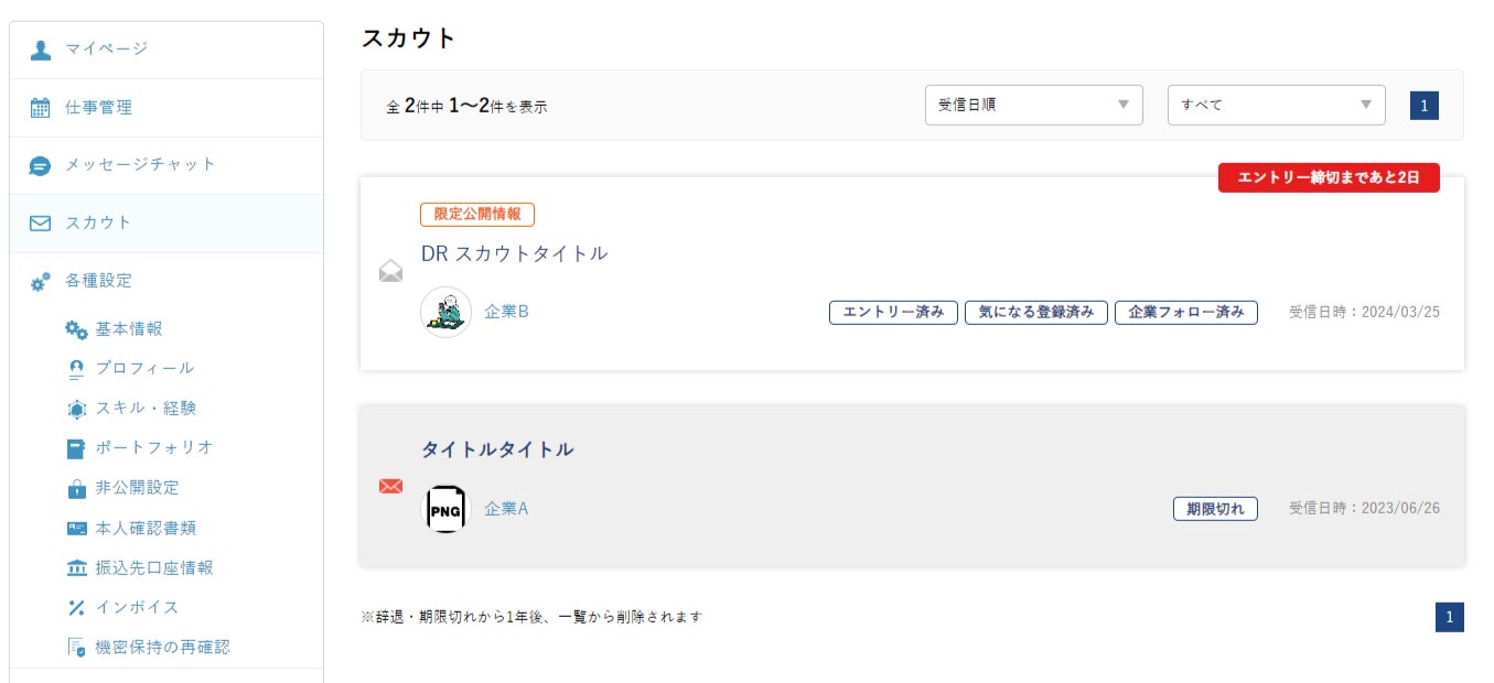オファーを送ったユーザーのみが求人情報を閲覧することができる「非公開求人」機能を活用すると、社内外に情報をオープンにせず募集を行うことが可能です。