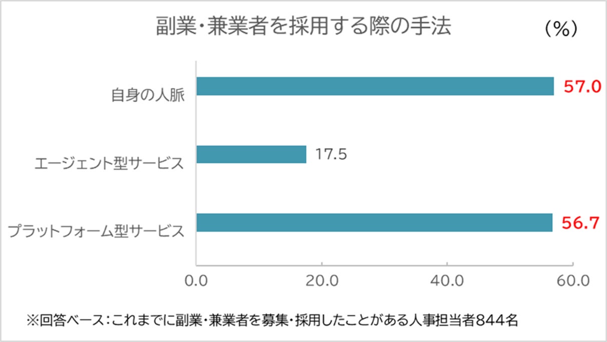 一方で、副業・兼業人材の採用手法は人事担当者の自身の人脈や、『スキイキ』のようなオープンに開示されたプラットフォーム型のサービスがメイン※2になっており、「募集をしたいが、事業に関する情報をオープンにしたくない」や「忙しいので、スキルや経験を持った人材のみに声を掛けて採用の手間を減らしたい」といった企業側の要望もありました。