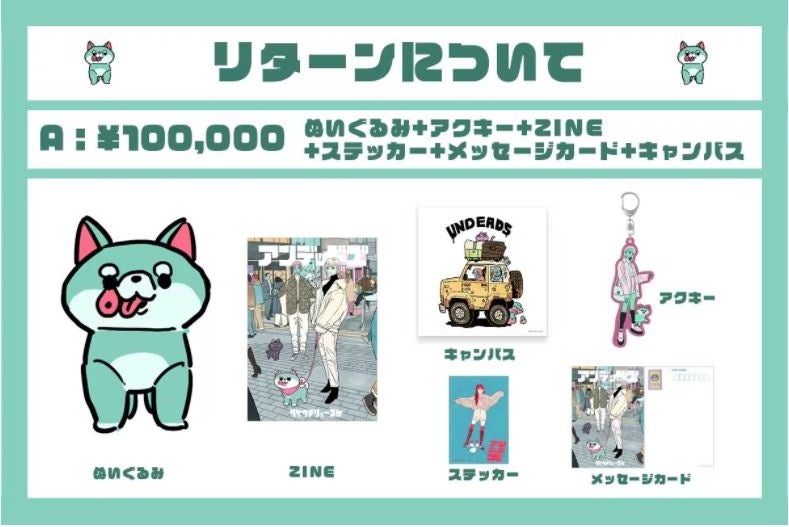 今回はSNSフォロワー47万人大人気イラストレーター【タケウチリョースケ】のオリジナルキャラ【ゾンビイヌ】ぬいぐるみ制作を行うプロジェクトを開始します。
