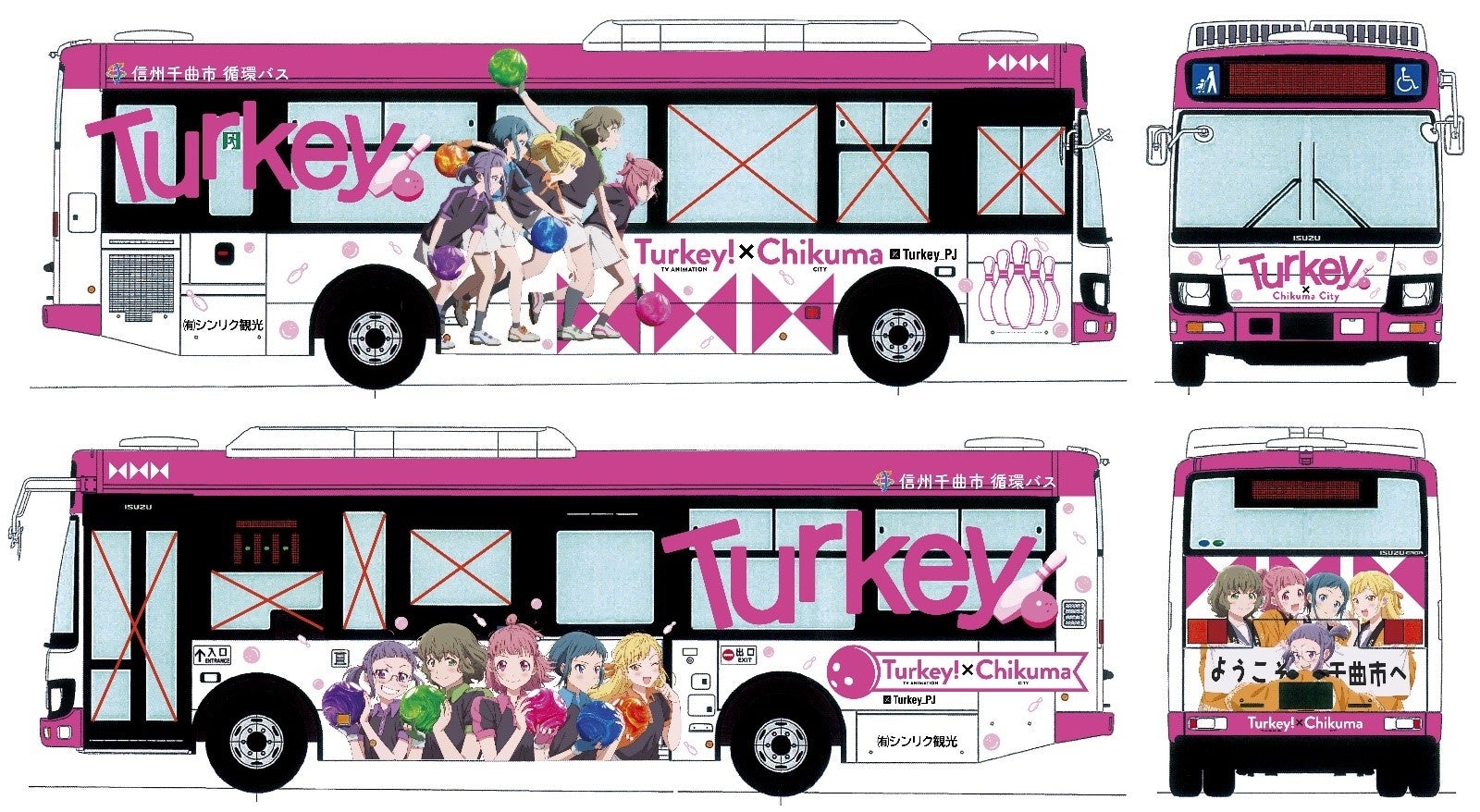千曲市大循環線(西回り)を運行する車両にオリジナルアニメ『Turkey!』オリジナルデザインのラッピングを施します。