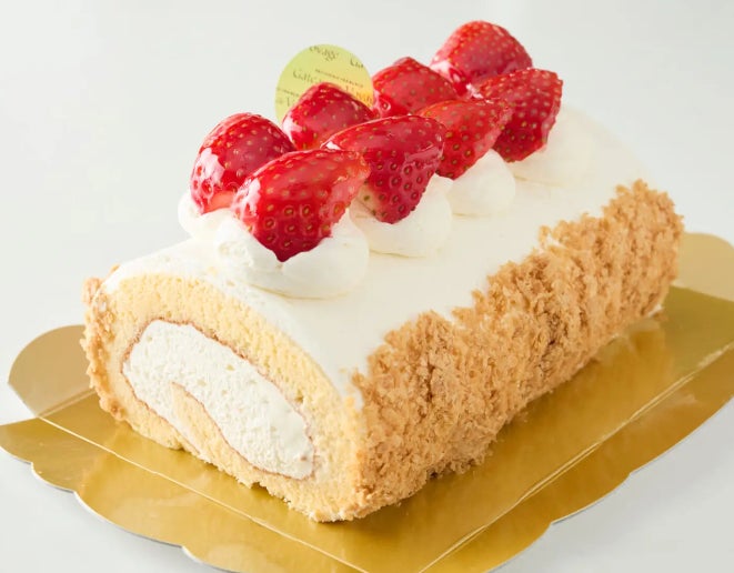 しっとりとしたくちどけの良いスポンジに新鮮な苺を乗せたロールケーキ。