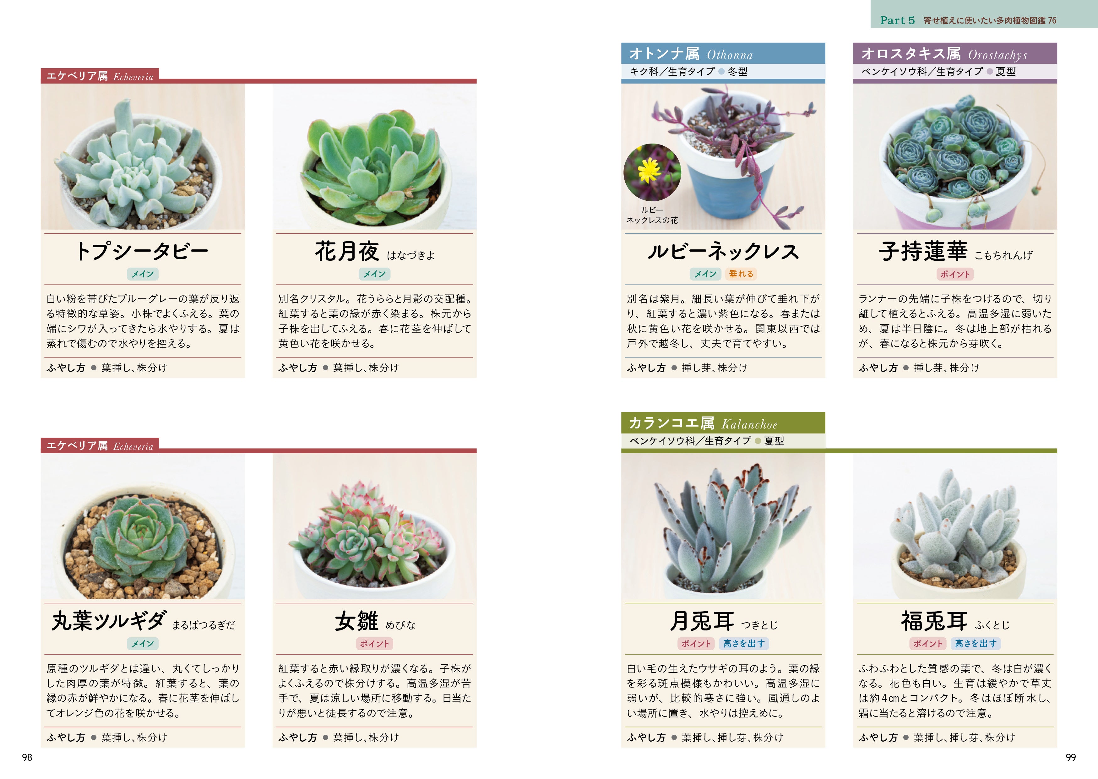 - 多肉植物図鑑はさまざまな属から76種を紹介