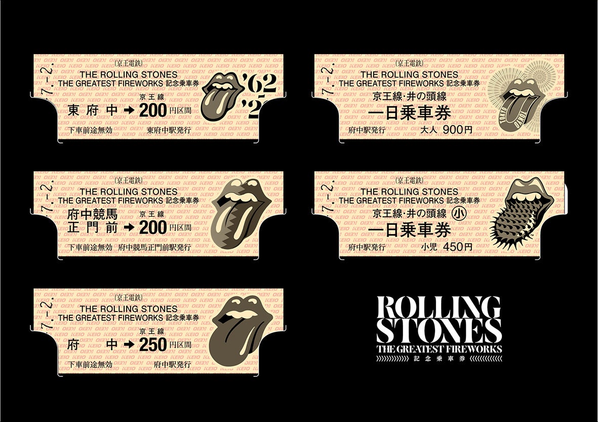 「東京SUGOI花火 ザ・ローリング・ストーンズ記念乗車券」発売(数量限定)。デザインが異なる硬券乗車券5枚をストーンズオフィシャルフォトグラファー:有賀幹夫氏のライブ写真を使用した台紙にセットし、7月2日(土)9:00よりネットで先行発売される。記念きっぷと鉄道雑貨のウェブマルシェ「きっぷと鉄こもの」サイトにて。