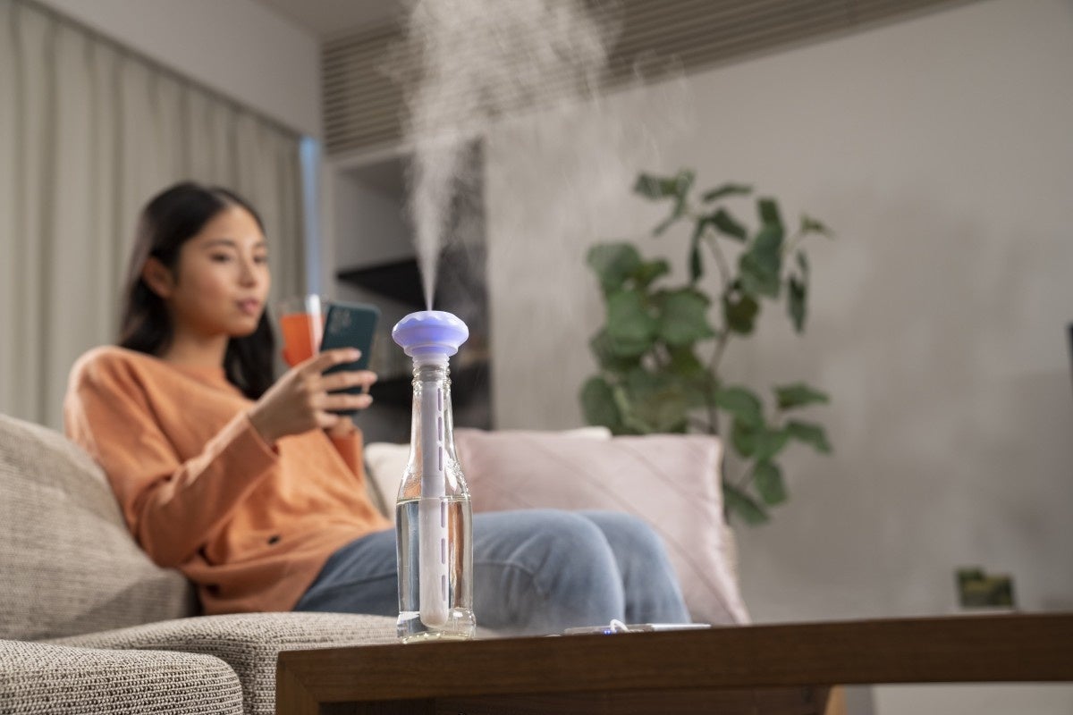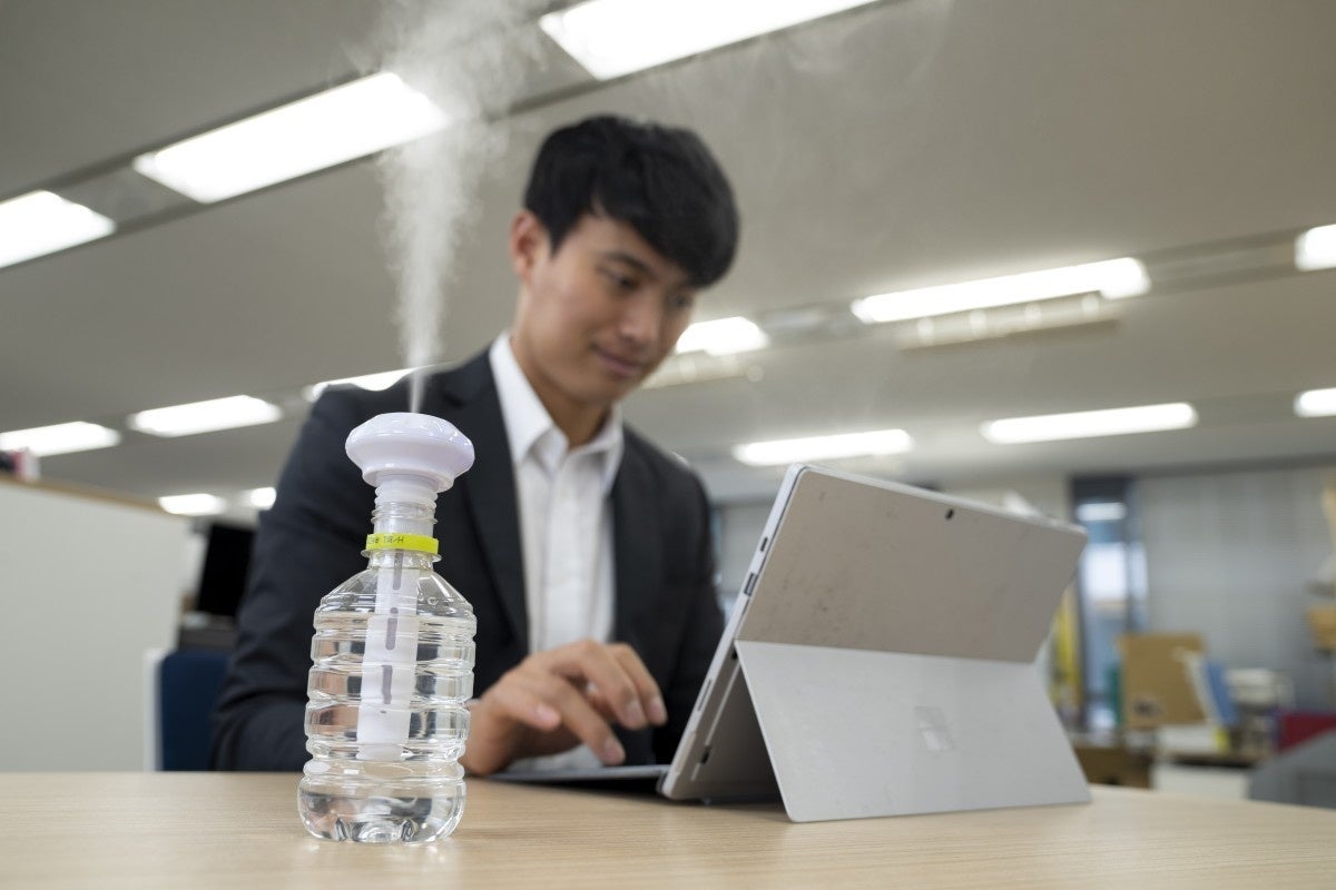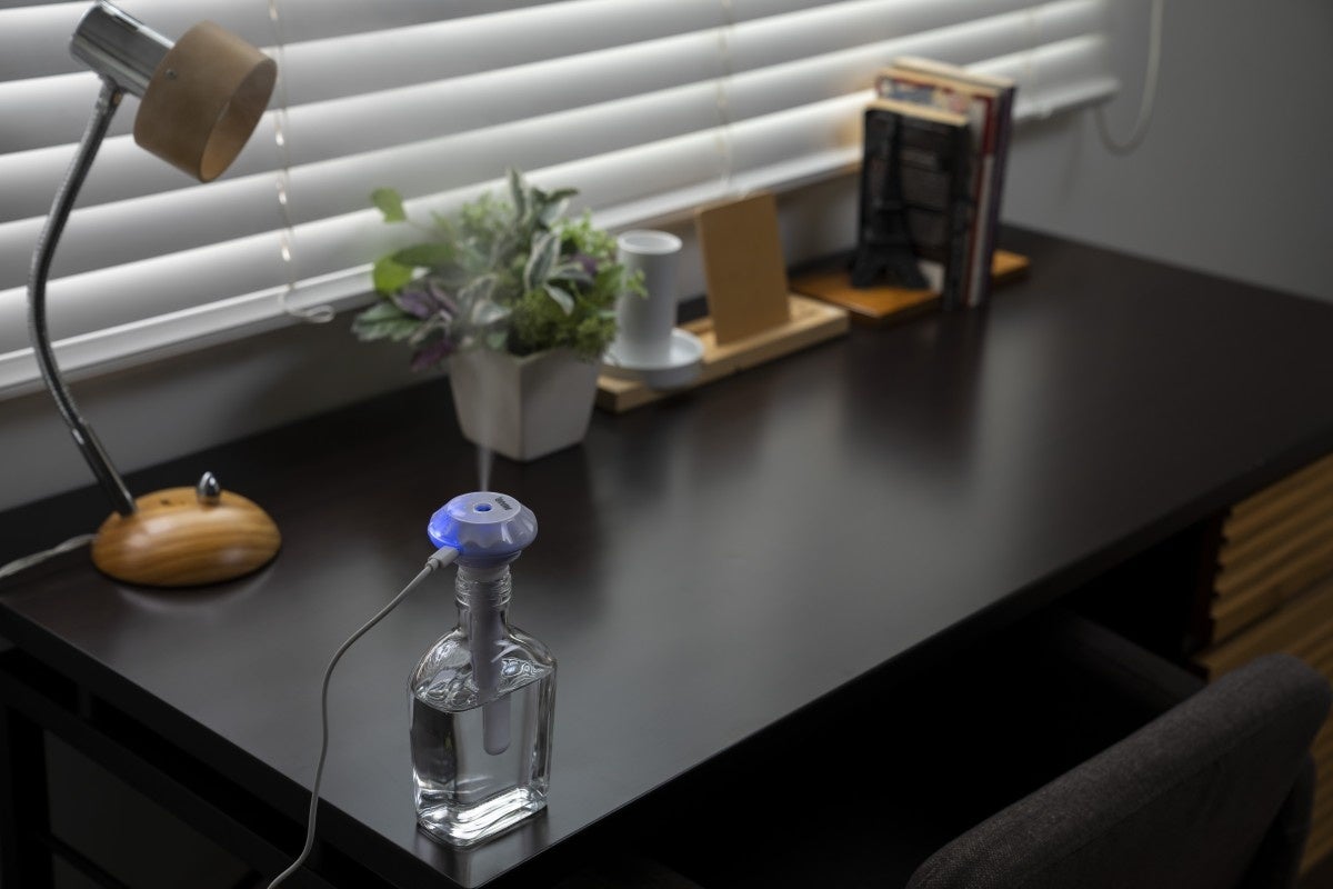 しかも、同梱される2本のスティックで長さを調節できるので、ペットボトルも小さなタイプから大きなタイプまで使い分けが可能。乾燥したオフィス、自宅の寝室やリビング、旅行や出張で利用するホテルなど、空気の乾燥を感じた瞬間にすぐに使える超便利なアイテムなのだ。