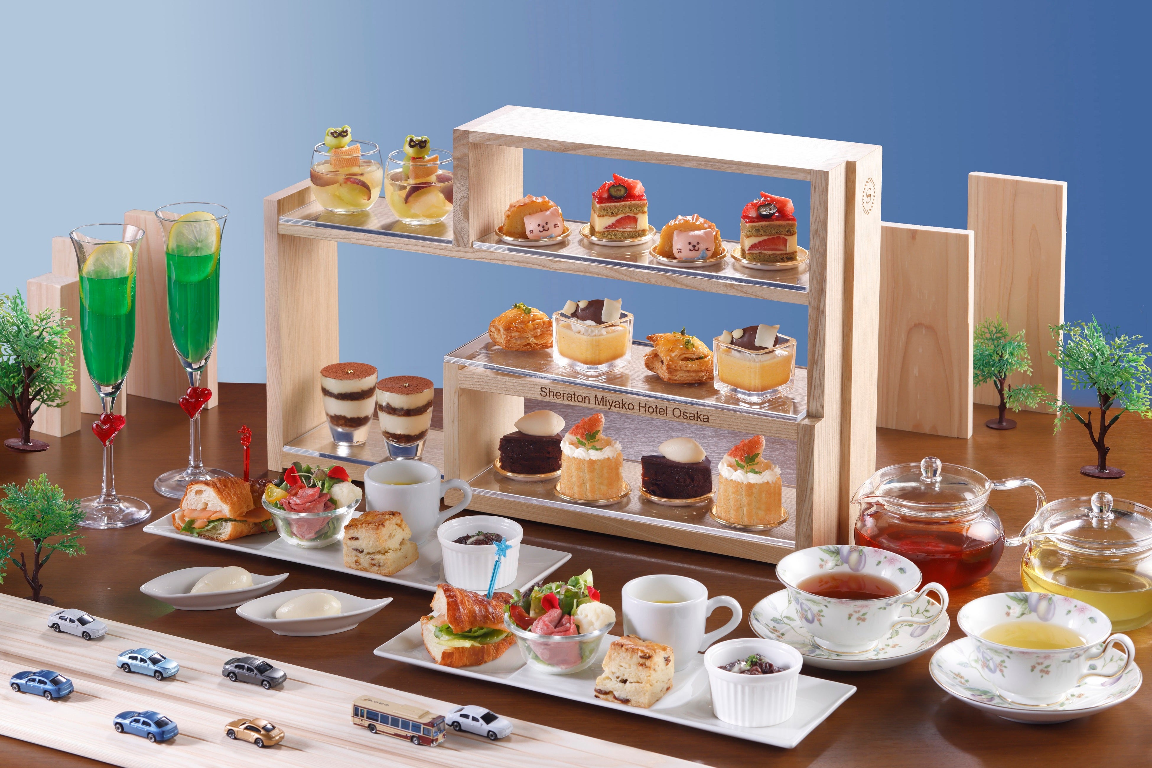 シェラトン都ホテル大阪【開業40周年記念】ホテル外観型のアフタヌーンティースタンドが登場 動物キャラクターのスタッフがお出迎えするアフタヌーンティーを販売