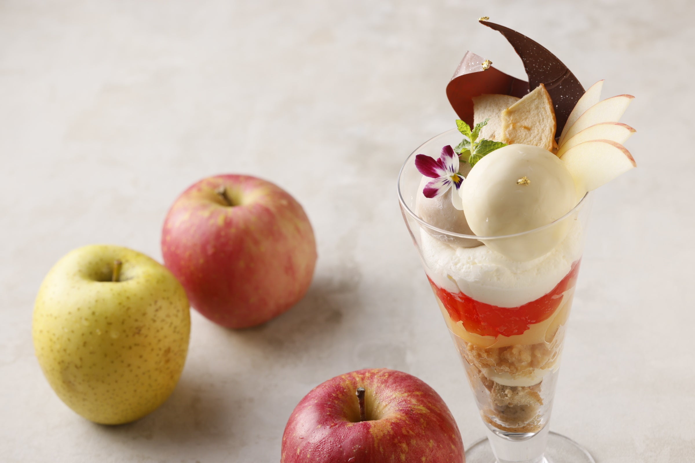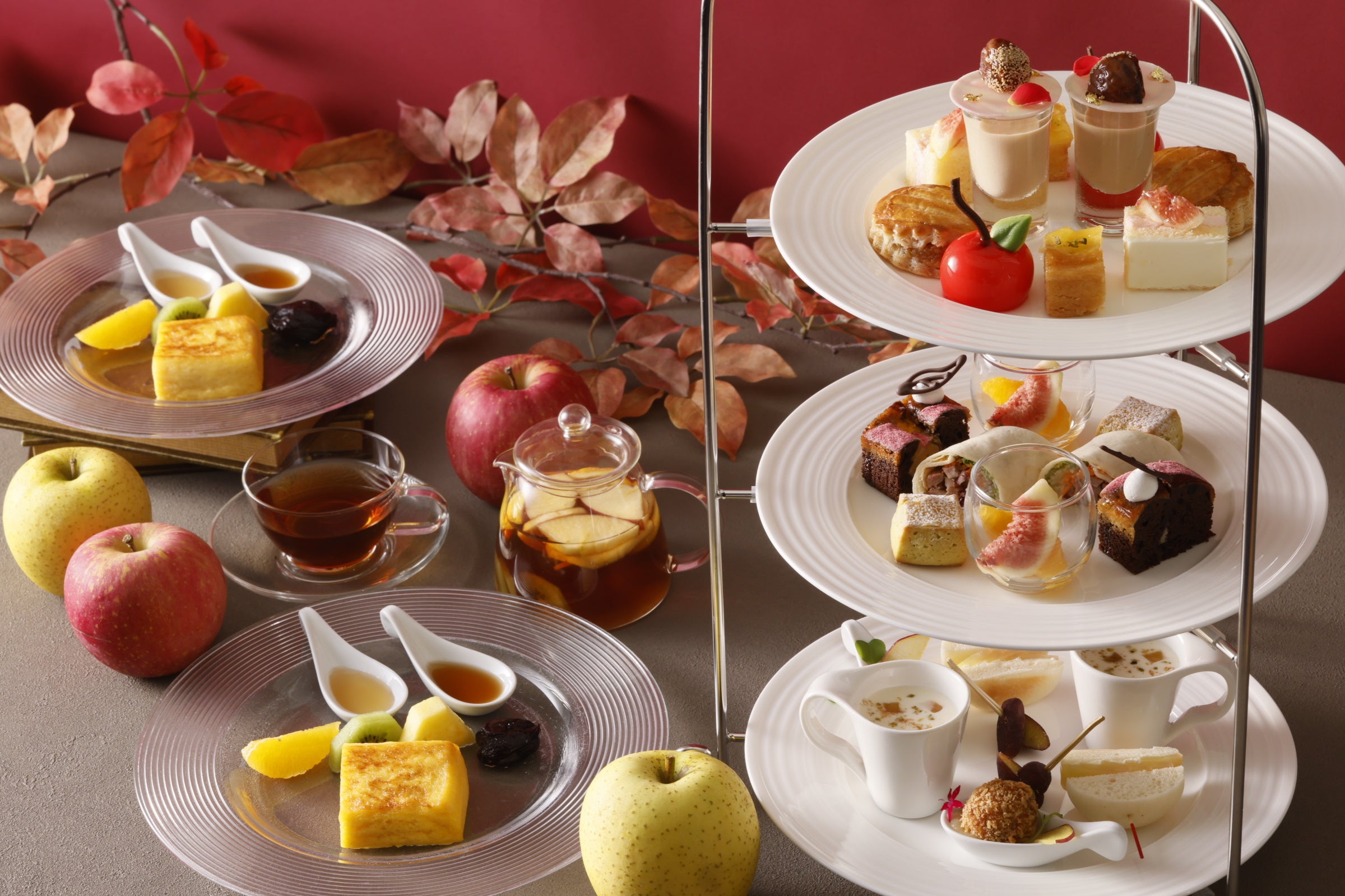 この他、りんごのデザートを含むランチコースをはじめ、スイーツにもセイボリーにもりんごを使用したりんご尽くしのアフタヌーンティー、パフェにカクテルなど、りんごの美味しさを引き立てた多彩なメニューをお楽しみいただけます。