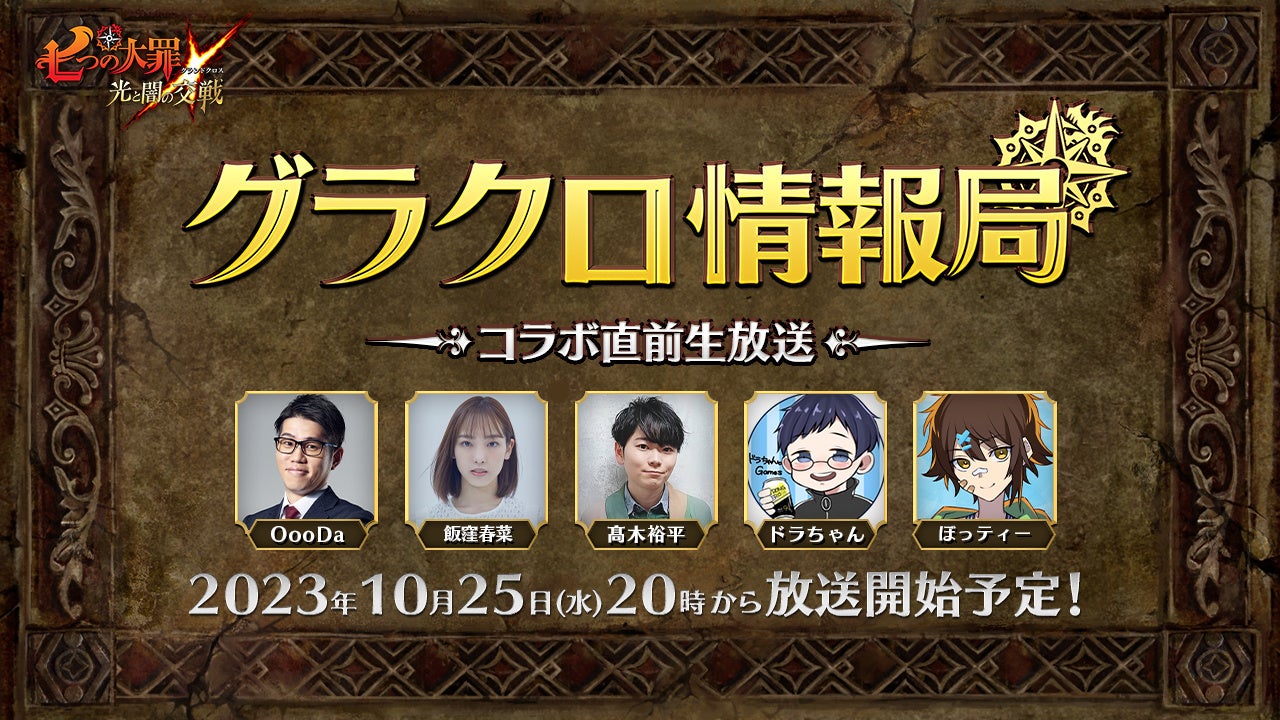『七つの大罪 ~光と闇の交戦~』第50回グラクロ情報局~コラボ直前生放送~10月25日実施のイベント情報を初公開!