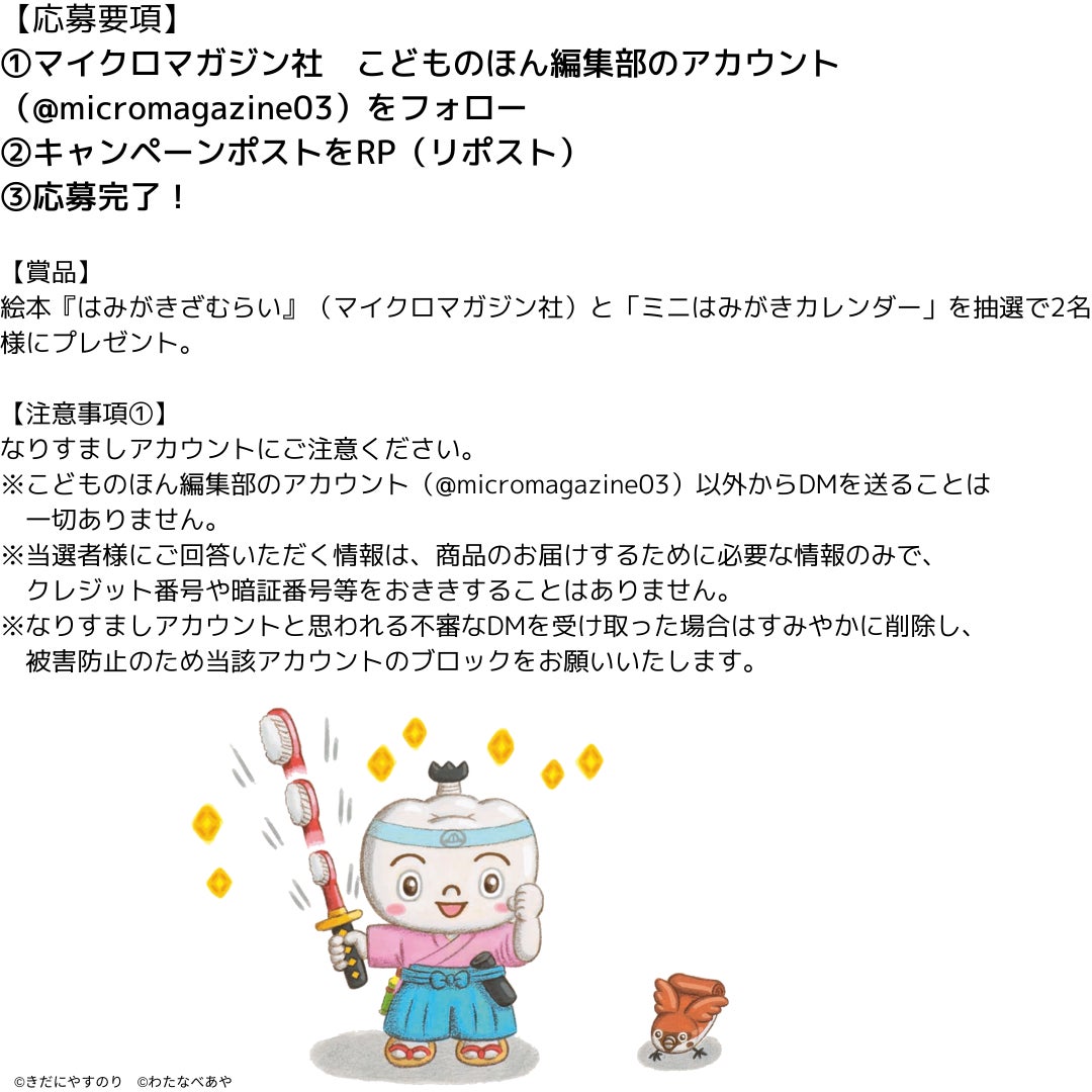 フォロー&リポスト(Instagramではいいね)をされた方から、抽選で2名様に絵本『はみがきざむらい』と「ミニはみがきカレンダー」をプレゼント!