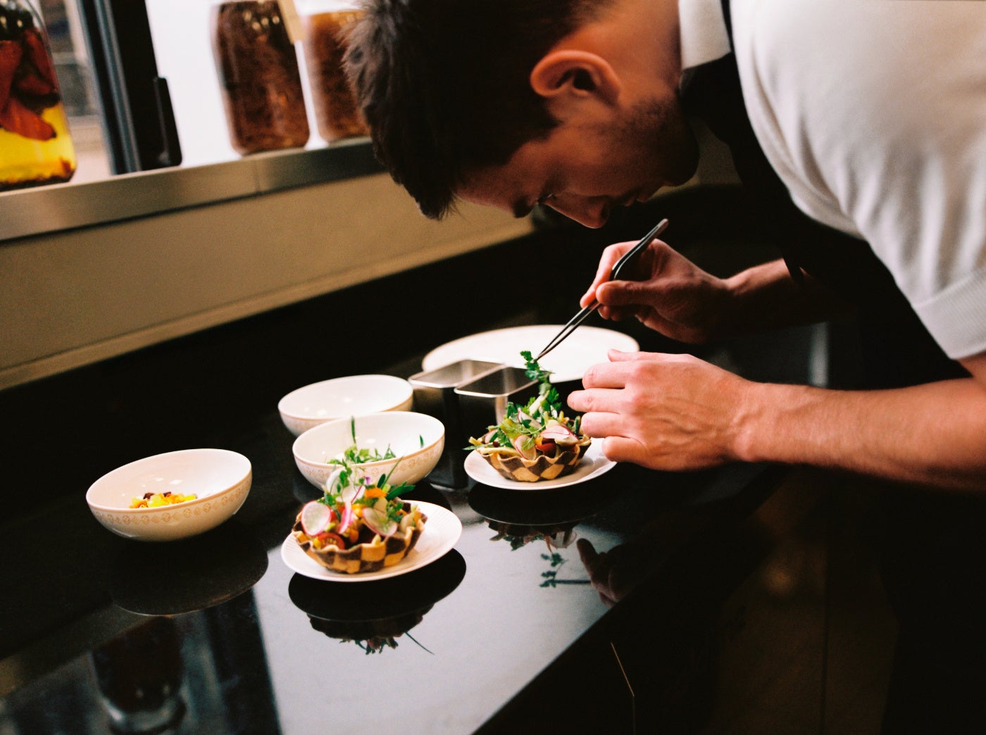最新の「ル·カフェ ルイ·ヴィトン」を支えるシェフ レオナルド·ザンブリーノ(Leonardo Zambrino)とパティシエ ゾーイ·チョウ(Zoe Zhou)は、それぞれの専門分野でルイ·ヴィトン 美食コミュニティを充実させ、美味しい料理とスイーツどちらも取揃えたバランスのよいメニューを提供します。著名なシェフのアルノー·ドンケルとマキシム·フレデリックの指導の下で修行を積み、パリやサントロペで培った経験から生まれた彼らの創作料理は、革新的な料理表現を通して、メゾンのシグネチャーを反映しています。メニューには、他の店舗でもお馴染みのものや、今回のオープンのためのユニークなものなど、さまざまな料理が並びます。