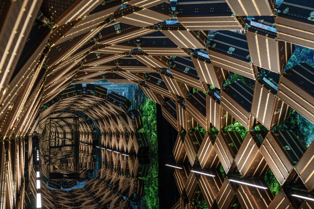 OMAの重松象平が演出を手掛けた壮大な空間では、過去と現在のアイコンが融合する時空を超えた創造の旅が、没入型の視覚体験と共にストーリーを繰り広げます。