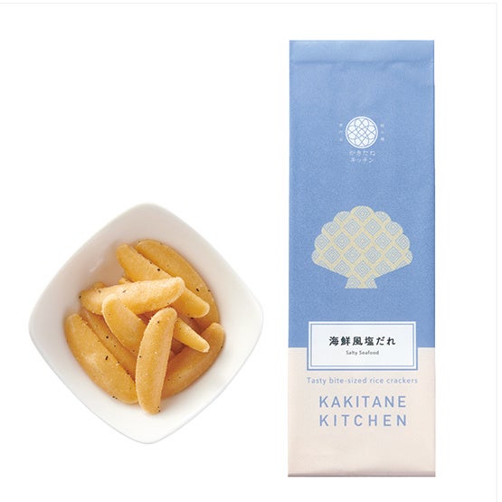 柿の種専門店かきたねキッチンのスタンドシリーズの「海鮮風塩だれ」。九鬼太白純正胡麻油という上品な味わいの胡麻油を使用しています。海鮮のうま味をぎゅっと閉じ込め、ペッパーでアクセントをつけた海の味わい香る一品です。