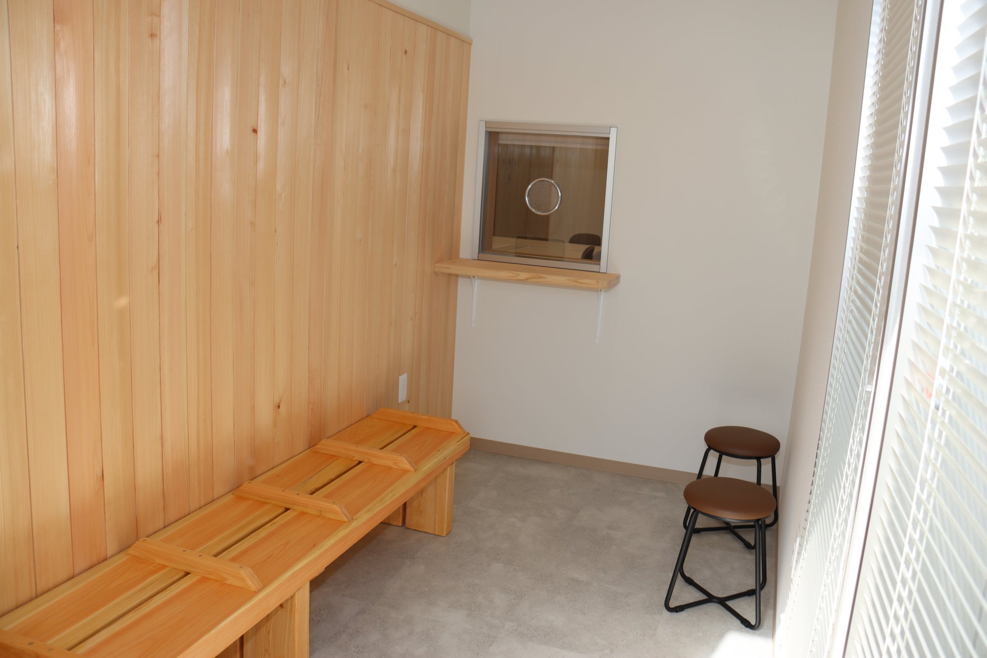 ・施設近隣を流れる桂川の下流に位置するグループ施設「さがみ湖MORI MORI」の森の再生事業で発生した間伐材を待合室の内装やベンチに活用しています。木の温かみを活かした施設とするとともに、グループ内での資源循環を行うことでサーキュラーエコノミーを実現しました。
