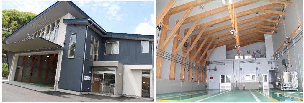 本建物は2階建て(延床面積541.79㎡)で、建築時のCO₂排出量を抑えるため、環境負荷の少ない木構造を採用している点が大きな特徴です。さらに、屋上に太陽光パネルを設置し、消費電力の約60%をCO₂フリーの電力で賄っているほか、内装には同グループ施設「さがみ湖MORI MORI」(神奈川県相模原市)の森の再生事業で発生した間伐材を活用し、FSC®認証の家具やリサイクルタイルカーペットを導入するなど、環境に配慮した仕組みを建物全体に取り入れています。