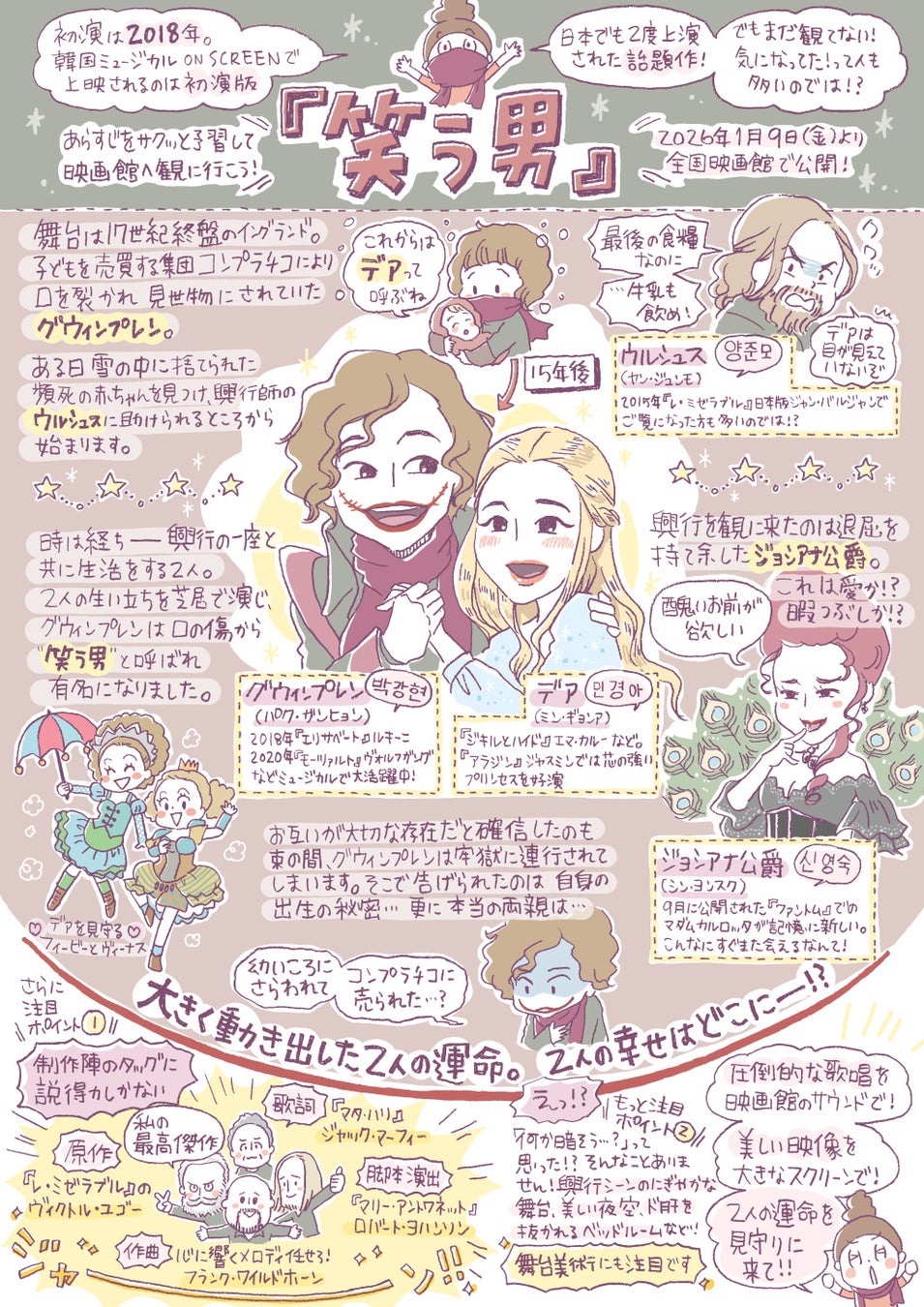 韓国ミュージカル ON SCREEN『笑う男』各界著名人より絶賛コメント到着!イラストレーター・春原弥生による“あらすじイラスト”公開!入場者プレゼント情報も解禁!YouTube番組第4弾の配信開始!