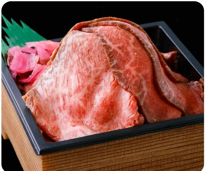 繊細な口どけがたまらないA5ランク黒毛和牛のローストビーフ。各日20食限定で、通常時の2倍量のローストビーフをのせてご提供!この一杯を味わえるのは『阪神丼フェス』だけ。