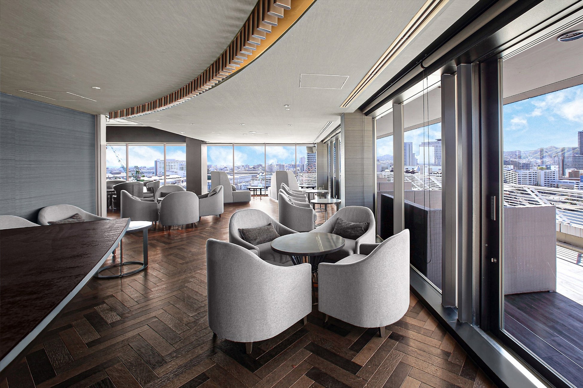 ホテル最上階に位置し、海と神戸の街並みを望む眺望豊かなカフェ。日中は自然光が差し込む空間で、神戸の海や街並み、神戸ポートタワーなどの景色を眺めながら、コーヒーや軽食とともにゆったりとしたひとときをお過ごしいただけます。