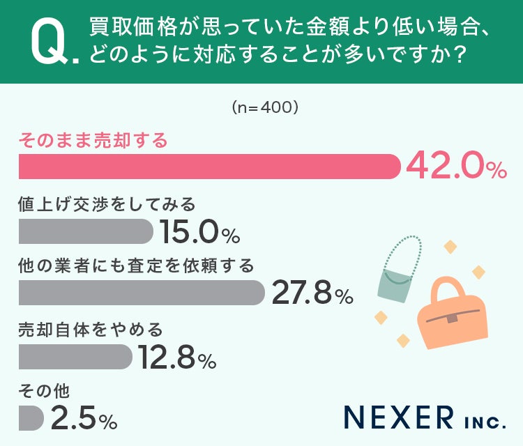 ■42%が、買取価格が思っていた金額より低い場合「そのまま売却する」