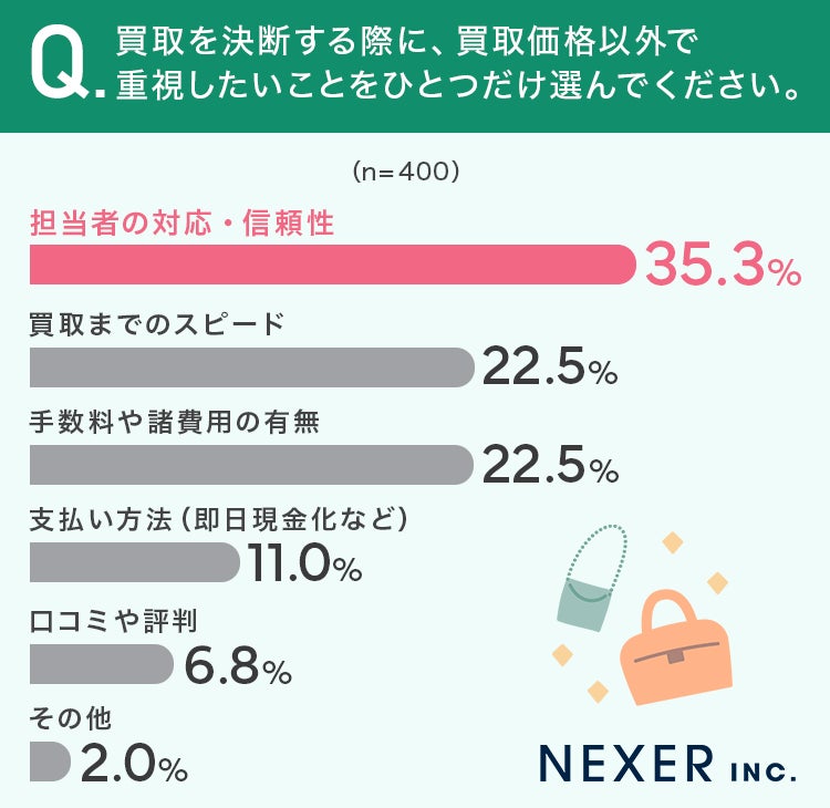 「買取までのスピード」や「手数料や諸経費の有無」の22.5%を大きく上回っています。