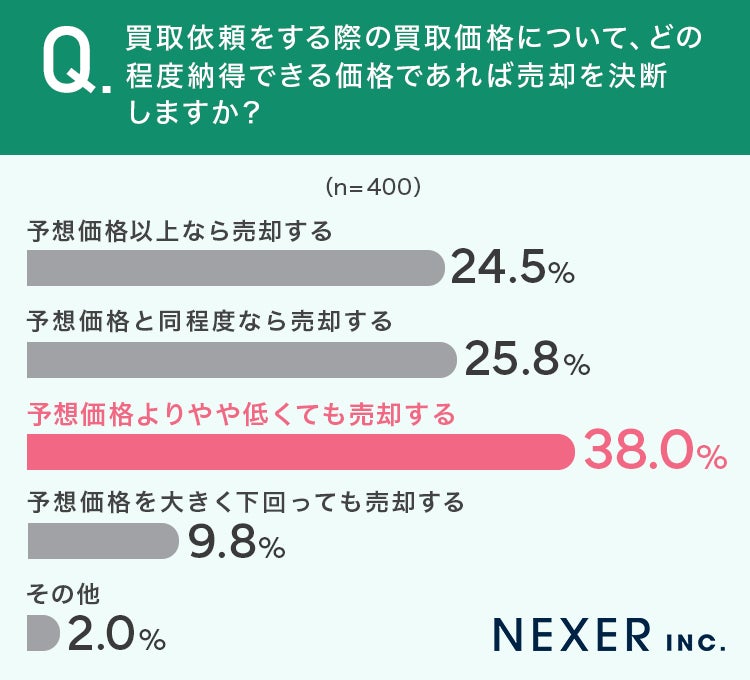 38%の方が「予想価格よりやや低くても売却する」と回答しました。