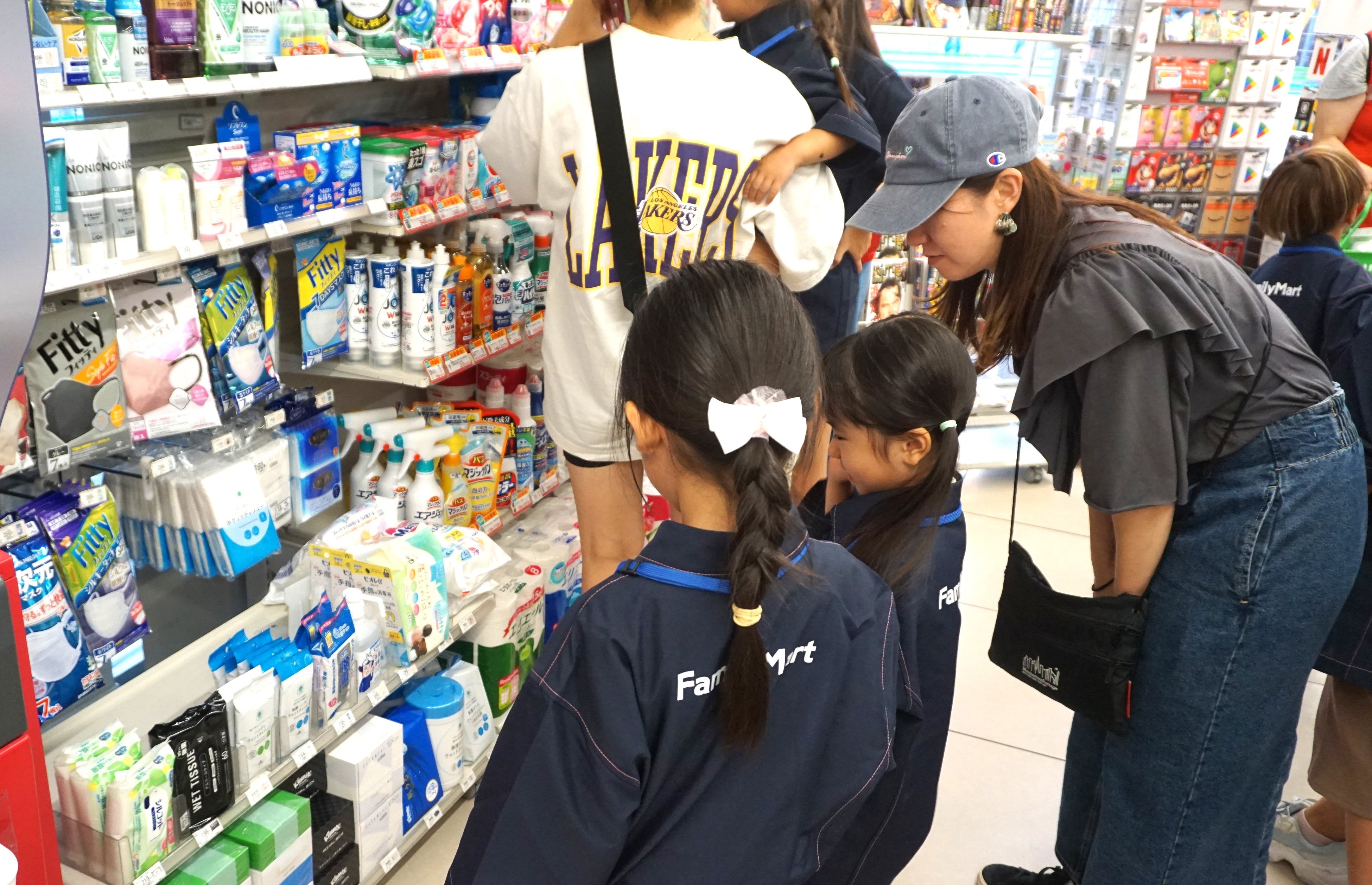 防災ワークショップで学んだ後は、ファミリーマートのお仕事を体験する時間です。こどもたちは少し緊張した面持ちでレジの前に立ち、「ピッ!」とバーコードを読み取る音に歓声をあげました。普段は見られないお店の裏側を探検したり、商品を一生懸命に補充したり、一つひとつの体験が、こどもたちにとって新鮮な発見に満ちた時間となりました。最後は、店舗のイートインスペースを活用したお食事会で交流を深めます。参加者みんなでテーブルを囲み、今日の体験を語り合いながら、和やかな時間を過ごすことができました。