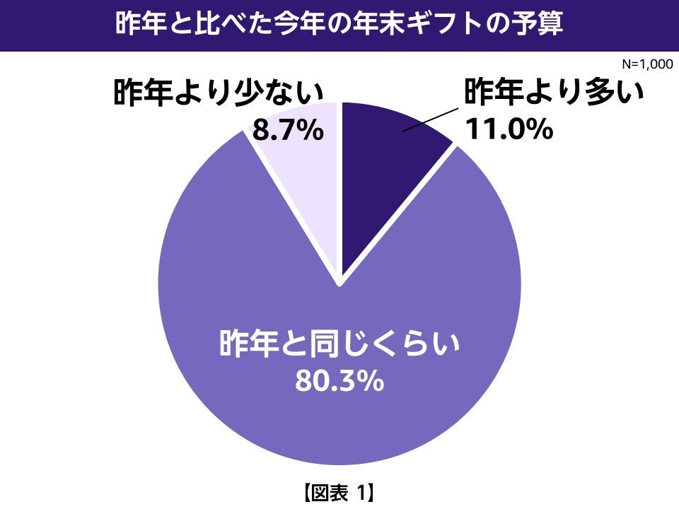 また、物価の高騰により家計負担が増えているなかでも、今年の年末のギフトの予算は「昨年と同じくらい」と答えた方が約8割で、「昨年よりも多い」という方も約1割でした【図表1】。1年の締めくくりに、自分へのご褒美や、お世話になった人にはしっかりとギフトを贈りたいと考えている方が多いのではないでしょうか。