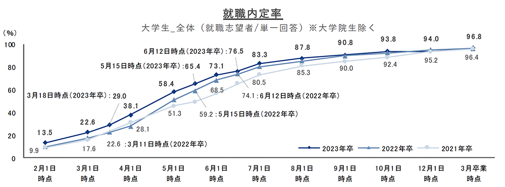 就職プロセス調査(2023年卒)「2023年3月度(卒業時点) 内定状況」