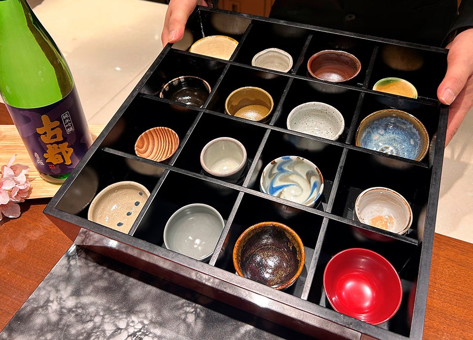 さらに、本コース限定で日本酒一杯をサービスします。おちょこは、お好みに合わせてお好きなものをお選びいただけるため、お花見気分をより一層盛り上げます。