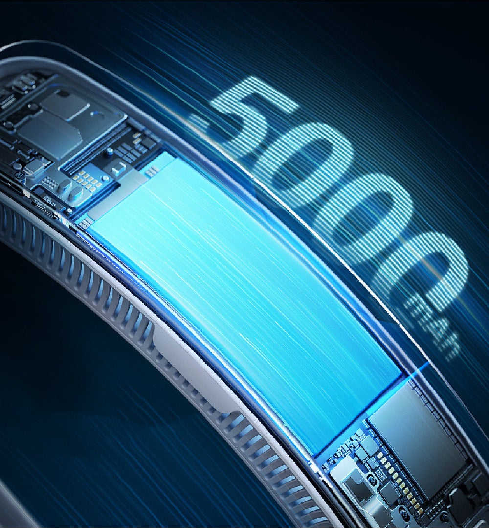 5000mAhの大容量バッテリーで最大17時間連続使用可能。一日中、快適。