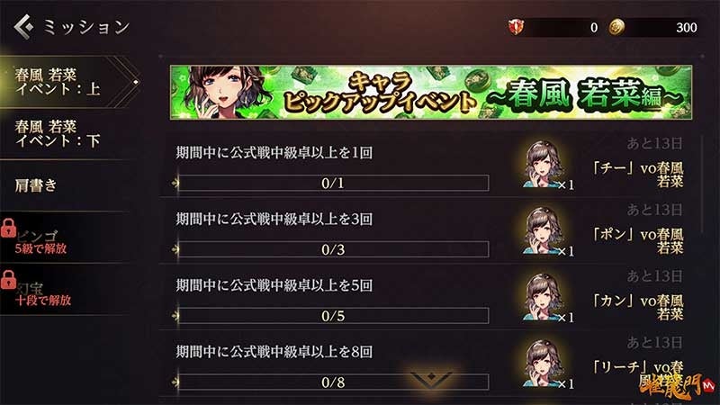『雀龍門M』ミッション達成でキャラやアイテムがもらえる!期間限定 キャラピックアップイベント春風 若菜(CV:本井えみ)編、黒川 冥沙(CV:福原香織)編 開催!