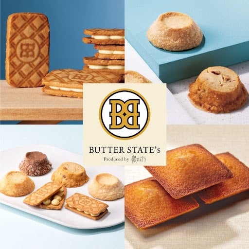 銀のぶどうのプロデュースで誕⽣したスイーツブランド「BUTTER STATE's(バターステイツ)by銀のぶどう」は、いつでもバターの⾹りにつつまれたバター合衆国。わたしたちが⽣まれて最初に記憶する⾹り=バターの⾹りを出発点に、バターがとけるほどのシェフたちの情熱でたくさんのおいしさを届けていきます。