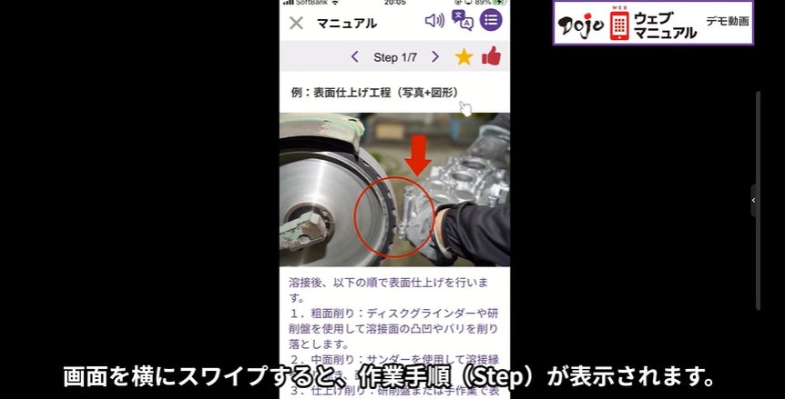 Dojoウェブマニュアルは、現場の作業手順をスマホで撮影し、その場でマニュアルを作成・管理・共有できるツールです。クラウドで一元管理ができ、17ヵ国語に翻訳もできます。また生成AIを活用し、動画から自動で工程を判別しマニュアル化する機能も搭載しています。 社名:株式会社テンダ