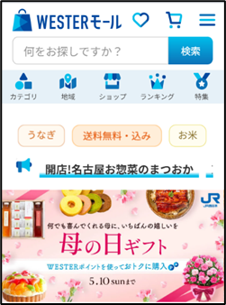 全国各地のお土産やお取り寄せグルメを中心としたJR西日本セレクトの商品を取り揃え、日常の食卓を彩るご褒美やちょっとした贈り物にもご利用いただける、「WESTERポイントがたまる・つかえる」オンラインショッピングモールです。